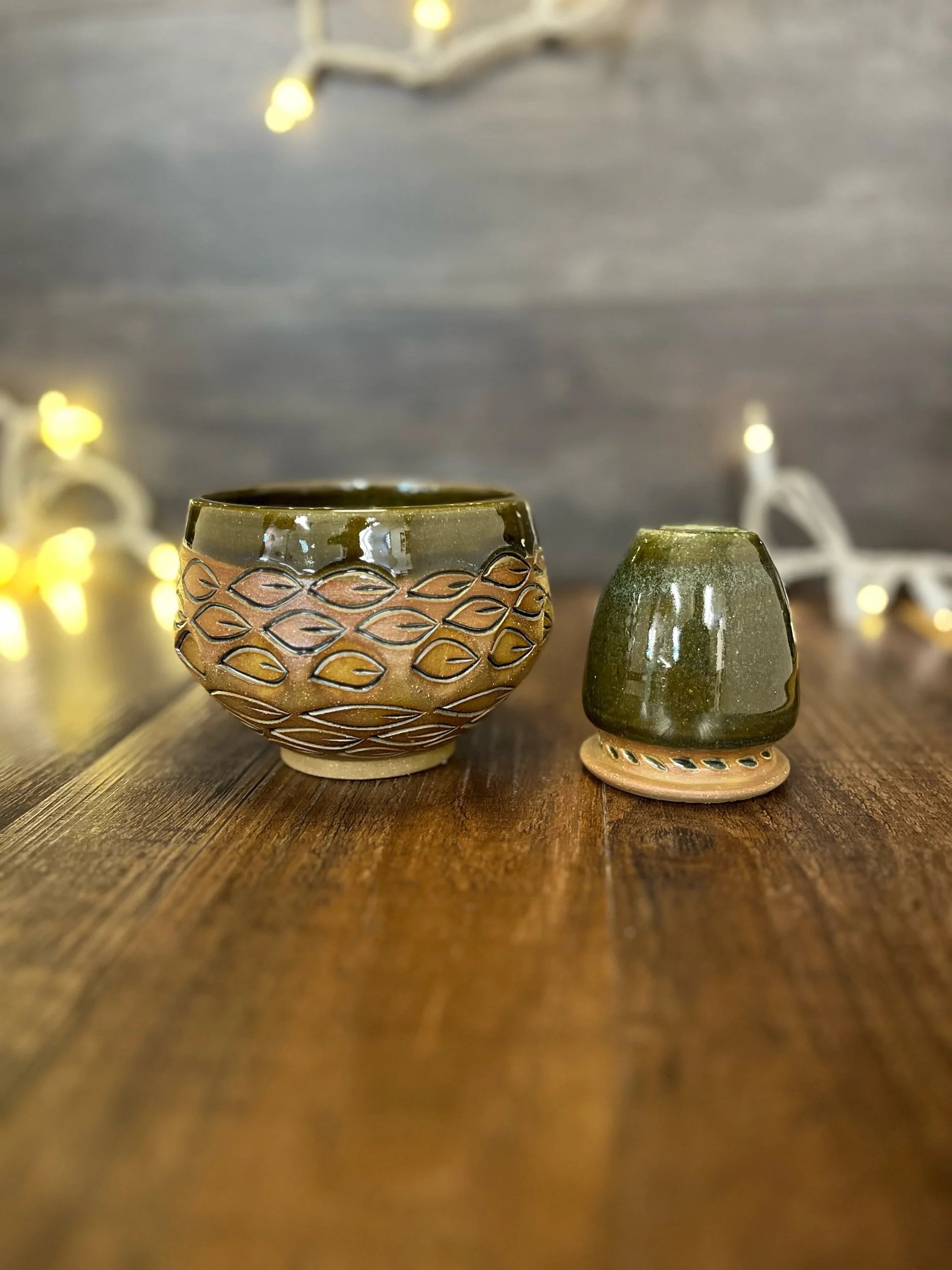Small batch. Handmade. From my hands to yours. bowls Categories: All All mugs travel mugs mug warmers wine cups/sippers/goblets bowls matcha vases & planters yarn bowls birds toothbrush holders etc sale All / bowls Blue Flame Matcha Bowl $65.00 Only 1 available Green Leaf Matcha Bowl $65.00 Only 1 available Green Leaf Matcha Bowl (Smaller) $65.00 Only 1 available White Vine Bowls $62.00 Only 2 available Falling Leaves Bowls $62.00 Only 2 available Summer Fields Tall Mixing Bowl (Large) $125.00 Only 1 available Summer Fields Tall Mixing Bowl (Small) $95.00 Only 1 available Vine Tall Mixing Bowl (Small) $95.00 Only 1 available Vine Tall Mixing Bowl (Large) $125.00 Only 1 available Swaying Branches Tall Mixing Bowl $125.00 Only 1 available Hearts Yarn Bowl $92.00 Only 1 available Swaying Branches Yarn Bowl (SECONDS) Sale Price: $50.00 Original Price: $92.00 Sold out Vine Yarn Bowl $92.00 Sold out Vine Veggie Bowl $87.00 Sold out Teal Vine Bowls $62.00 Only 4 available